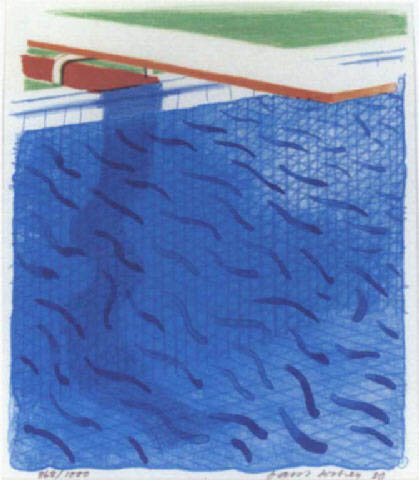 David Hockney Pool Made with Paper and Blue Ink for Book 1980 color lithograph, 10.5 x 9 in., ed. 1,000 $3,819 Butterfields Oct. 24, 2001