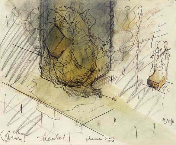 Claes Oldenburg Proposal for a Sculpture in the Form of a Steaming Baked Potato for a Site on 57th Street, with Butter 1970 ink and watercolor with pastel & color pencil, 7.9 x 9.6 in. £12,000 ($20,067) Sotheby's London June 26, 2003