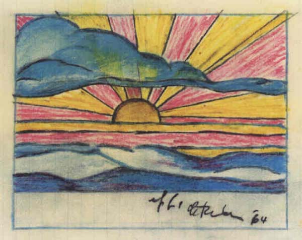 Roy Lichtenstein Study for Setting Sun and Sea Landscape 1964 color pencil, 3.9 x 5 in. bought in (est. £8,000-£12,000) Sotheby's London Oct. 22, 2002