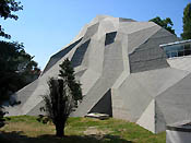 No international art festival would be complete without a dose of hormone-fueled ambition, and the young artist Hans Schabus (b. 1970) provides it in spades. Schabus, who sailed a small boat through the Vienna sewers for an artwork in 2002, completely transformed the Austrian pavilion, designed in 1935 by Josef Hoffmann, into a massive mountain. Built of lumber and covered with tacked-down tarpaper, Schabus' The Last Land is fitted inside with a network of stairs and passages that leads visitors to various observation hatches. Schabus says his work "transfers the myth of the mountain enveloping Austria to the city on the lagoon built on water."