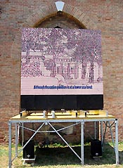 Pitch-perfect political art turned up in two adjoining spaces at the Fondatione Levi -- at the Afghanistan pavilion, a moving DVD projection by Lida Abdul of a chador-clad woman whitewashing some stone ruins, and a projection of stirring newsreel footage from the Ukrainian "Orange Revolution" assembled by curator Oleksiy Tytarenko at the Ukraine pavilion.