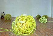 This show seemed especially site-specific thanks to the flight of shallow steps that lead from the gallery's entrance down to its main space. The illusion of a surface of wind-blown water was given by Michael Krondl's seven-foot-long length of inkjet-printed vinyl, titled Waterwalk (Rotunda) (2003). Installed on the floor, at first glace the piece was uncannily real, causing a hair-raising chill.
