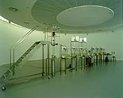 Worse, the installation was placed in a cold, clean space at the museum, where it was nourished by a first class chef who prepared two meals a day in an attached kitchen. The atmosphere suggested a hospital equipped for a strange experiment -- the birth and care of a machine that eats and defecates -- a mechanical baby. "Hi," it seemed to say, "I'm almost like you."