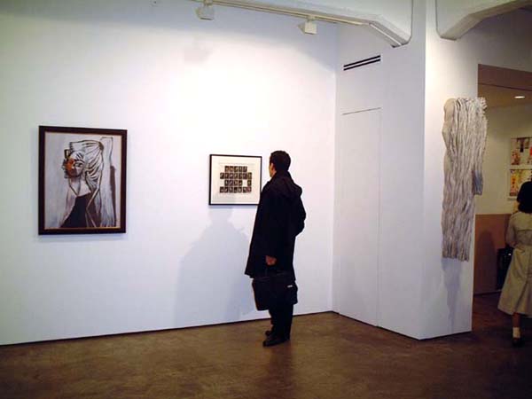 Shugo Satani's Shugoarts gallery, with Yasumasa Morimura's Picasso-based self-portrait and a wall sculpture by Shigeo Toya |