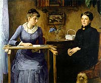 An ideal oasis for a midtown lunch hour, New York's Dahesh Museum is currently dressed up as an intimate European salon, showing work by an international group of 19th-century women artists in an exhibition called "Overcoming All Obstacles: The Women of the Academie Julian." What are the "obstacles" to which the show's unfortunate title refers? As curators Gabriel Weiberg and Jane R. Becker make clear, the French art establishment did not exactly roll out the red carpet for these women. In fact, it didn't even open the door. Women were denied entry into the career-making Ecole des Beaux-Arts until 1897. Painter Rodolphe Julian, who also did a little wrestling promotion in his spare time, recognized a sound opportunity when he saw one. He surmised that women could withstand the kind of disciplined fine arts training traditionally reserved exclusively for men. This was a progressive cause for Julian, but welcoming well-off, mostly foreign women into his Académie was also very good business. His co-ed art studios followed the regimen of the Ecole de Beaux-Arts, and even borrowed some of its well-connected professors. Matisse became one of the Académie's better known grads, but the women trained here were also stars, many of them returning to their own countries as successful portraitists (then considered the most appropriate genre for a serious female painter). In several vivid self-portraits the Julian women brandish the tools of their trade. You can almost see them battling the improbability of their existence, and these intriguing works are badges of professional identity. No one looks more empowered by palette and brushes than the Polish-born Anna Bilinska. In her Self-Portrait with Apron and Brushes (1887) she bestrides a studio chair, confronting the viewer as intensely as she would a canvas. Bilinska is clearly a woman used to honest self-assessment (and this was before Frida Kahlo made facial hair cool). Most of Bilinska's works on view here have traveled from Cracow and Warsaw. The chance to discover them here in New York alone makes the show worth the trip. Another highlight is In the Studio (1881) by the Ukrainian Marie Bashkirtseff. Following founder Julian's savvy suggestion, Bashkirtseff painted her fellow students in a life class at the Académie Julian -- a great advertisement for the school when the painting eventually hung at the Salon. Although drawing from the live model was the holy grail of academic training, these industrious women seem shortchanged by the Académie's choice of model -- a slack, bored little boy, indifferently posed as a shepherd. Bashkirsteff's ode to the Académie is by far her best work in the show. After leaving Julian, she eventually made a name for herself painting street urchins, who look like refugees from the cast of Little Rascals set in 19th-century Paris. She professed to be an ardent admirer of Balzac, but gritty realism is about the last thing this Russian aristocrat's take on poverty suggests. Her Jean et Jacques (1883) -- a pair of healthy workhouse boys with unkempt hair and perfectly holed smocks -- borders on kitsch. Picturesque Paris seems so beautiful that even its street children are charming! Bashkirtseff's In the Studio hangs next to the American Elizabeth Gardner's The Shepherd David (ca. 1895), the kind of picture that the students in the life class were learning to make. In this smart pairing, 19th-century academic process and product are seen side by side. Thanks to the saccharine goodness of Gardner's milky David, here rescuing an even sweeter lamb, the work looks like a Bouguereau knock-off. Bouguereau, an academic giant, was Gardner's professor at Julian, and one of his works is on view for comparison. Gardner painted exactly like him (his male students emulated his ubiquitous style too) -- until she married him and stopped painting altogether. Julian students were encouraged to keep up with the latest trends, and the real stars of this show are works that subtly break with academic norms. For Swiss artist Louise Breslau, this meant experimenting with Impressionism. Her lively portrait of fellow artist Henry Davison (1880) depicts the lanky British bohemian, his hat playfully tossed over an antique bust in a cluttered studio. We are often led to believe that only men shared this kind of artistic camaraderie immortalized in portraits of each other, such as Manet's Portrait of Emile Zola, which also belongs to the d'Orsay, but hangs more frequently and prominently than Breslau's portrait of Davison. (Zola is, after all, more of a star in demand.) The character of the roving flaneur, which Breslau captures in Davison, was off-limits to Breslau herself. She had to paint the arenas of life to which a bourgeois lady had access in the late 19th century -- the sitting room instead of the café-concert, for instance. A palpable sense of domestic confinement is evoked in Breslau's At Home (1885), a portrait of the artist's mother and sister (perhaps the most beautifully painted work in the exhibition). Both stare idly off into space, pausing indefinitely from the lady-like pursuits of letter writing and embroidery (ho hum). A drooping flower suggests the airlessness of this room. Even the family dog, cornered claustrophobically in the bottom of the picture, pleads for rescue. As the accompanying catalogue explains, a contemporary critic (someone who never spent the afternoon embroidering) read this painting as a touching scene of feminine meditation, but the mood Breslau creates here is far more complex. Anna Bilinska also looked at the Impressionists. She said she was disgusted by their lazy sketchiness, but her own atmospheric rendering of Unter der Linden Street in Berlin (1890) buzzes with such spontaneity that it makes Monet's street scenes look labored by comparison. The most provocative image in the show is Bilinska's Male Semi-Nude Study (1885). The demure, downward gaze of the male model contrasts brilliantly with the p