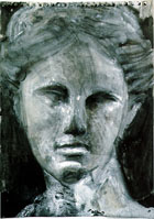 On one floor, Dine's drawings, torn from a spiral notebook, of Greek and Roman busts were installed like a frieze all around both rooms and the main hallway. This is a single work consisting of 150 drawings. Dine shaves away at the surfaces of his subjects, and works, reworks and rubs the surfaces of his objects (the drawings themselves) until they have a classical patina and feeling. Where this observer comes down on the fashion/art debate is unclear at this point. One very well known and important 'artist has said simply, "I like fashion."