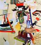 Not that I was blind to the appeal of her robust sloppiness, her tongue-in-cheek virtuosity. The raw talent was plain to see, an authentic style bursting to escape the strictures of a junk philosophy. I even included a kind of escape clause -- for her and for me: "One feels that, left alone to work things out in her studio, the sheer joy of painting would be enough to exorcise the atrocious pedagogy of Goldsmith's." Against the odds, that's what has happened. She has worked-through the limitations of her youthful excesses to the beginnings of a mature style, all the while retaining her early energy. Specifically in the pictures of the last two years, since her most recent (second) show at Waddington Galleries in London, Rae has catapulted herself into a new painterly orbit.