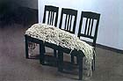 Petah Coyne's Untitled (Red Spider) (1999) is an elegant spider-web-like mass of hair and insects, installed cattycorner in the space. A whimsical piece by Sharon Louden, Agents Lying on Chairs (1999), is a spaghetti-like tangle of white foam rubber draped over three black chairs. A meditation on the quotidian.