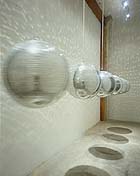 Armleder makes art like he's deconstructing a boutique. Linked with Fluxus and Conceptual art since 1967, his sculptures are a Rococo mix of everything Pop, from '50s art moderne kitchen tables to mirrored disco balls. Untitled (Global V) (1998) consists of six mirrored balls hanging from the ceiling and slowly rotating, sending a kaleidoscope of light shards onto the walls, ceiling and floor. The variety of shifting surfaces is mesmerizingly ornate, lulling the viewer into a silent sound stage. No disco music here.