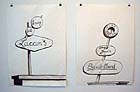 Does nature depicted through the screen of memory make you melancholy? Imagine, then, checking into the Barthes Motel or Foucault's Trailer Park for a more "continental" stay. The German artist-cartoonist Oleg Westphalen suggests as much in a group of four drawings at Apex Art, the international exhibition space in Tribeca, operated by artist Steven Rand. My favorite is Lacan's Grill and Lounge, an uncanny pun on psychiatric method. Westphalen's work is part of "Arrested Ambition," the last show organized by Apex curator Gregory Williams before he goes part-time. Westphalen is pictured on the cover of the brochure for the show as well, dressed up like a goofy lounge singer. I like him.