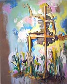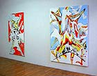 In the back room at P.P.O.W. is another painting that avoids clichés. It's by Margaret Curtis and called Sign from Behind. Curtis does a kind of country hayseed feminist burlesque, mixing together gender representations and a love of paint. In this work, from a show at the gallery earlier this year, we see the back of a dilapidated road sign that by its silhouette depicts some kind of glamour girl. Yet some looping shapes at the bottom -- her dress -- are uncomfortably testicular. Similarly, the pretty, flowery, icing-like paint is a bit too much like clods of mud or even feces. What scrumptious, subtle wit! It's $6,000.